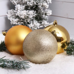 - Набор украшений Шары 10см 3шт блест.пластик золото